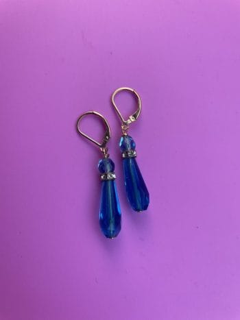 Blue crystal drop 1960s earrings