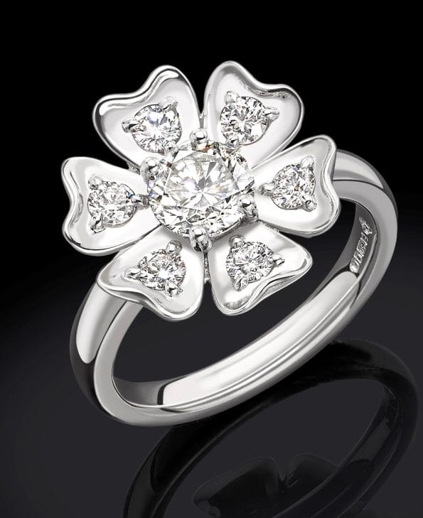Beautiful 18ct Gold Floral Engagement Ring set with brilliant cut diamonds