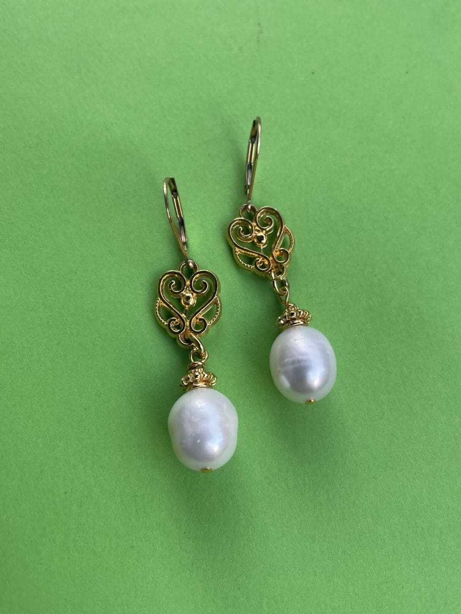 statement pearl re-modelled 1980s vintage earrings with fresh water pearl, drop approx 3.5cm excluding fittings