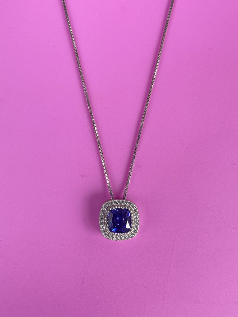 sterling silver necklace set with blue and clear cublic zirconias